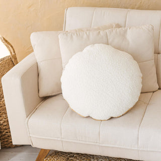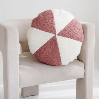 MINICAMP Bouclé Circus-Style Rose and White Throw Pillow with Chic Golden Trim