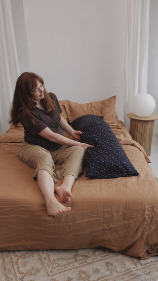 MINICAMP Long Body Support Pillow for Sleeping in Natural Linen with Leopard Pattern