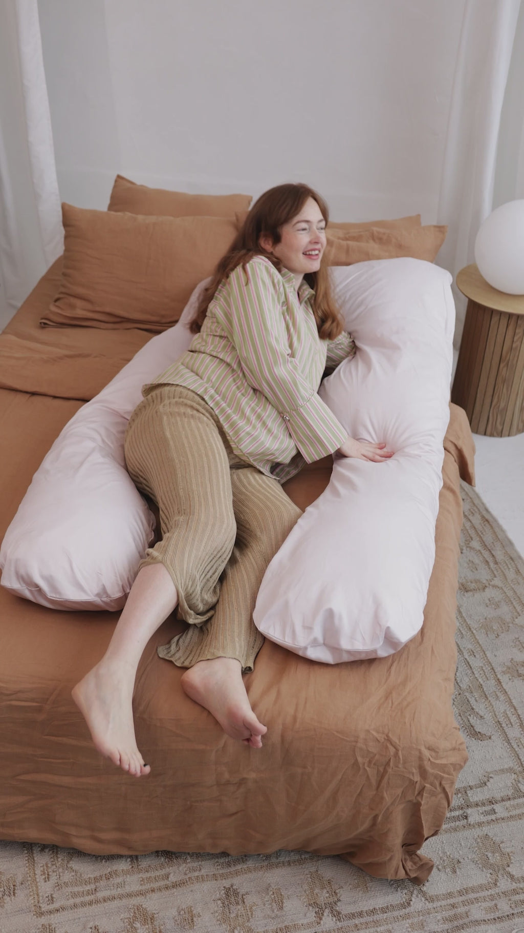 Wrap yourself in comfort with MINICAMP’s U-Shaped Maternity Pillow, a beautifully designed essential for maternity support and restful sleep. With its certified natural cover in elegant shell pink color, this versatile pillow makes a beautiful addition to any bedroom or nursery.