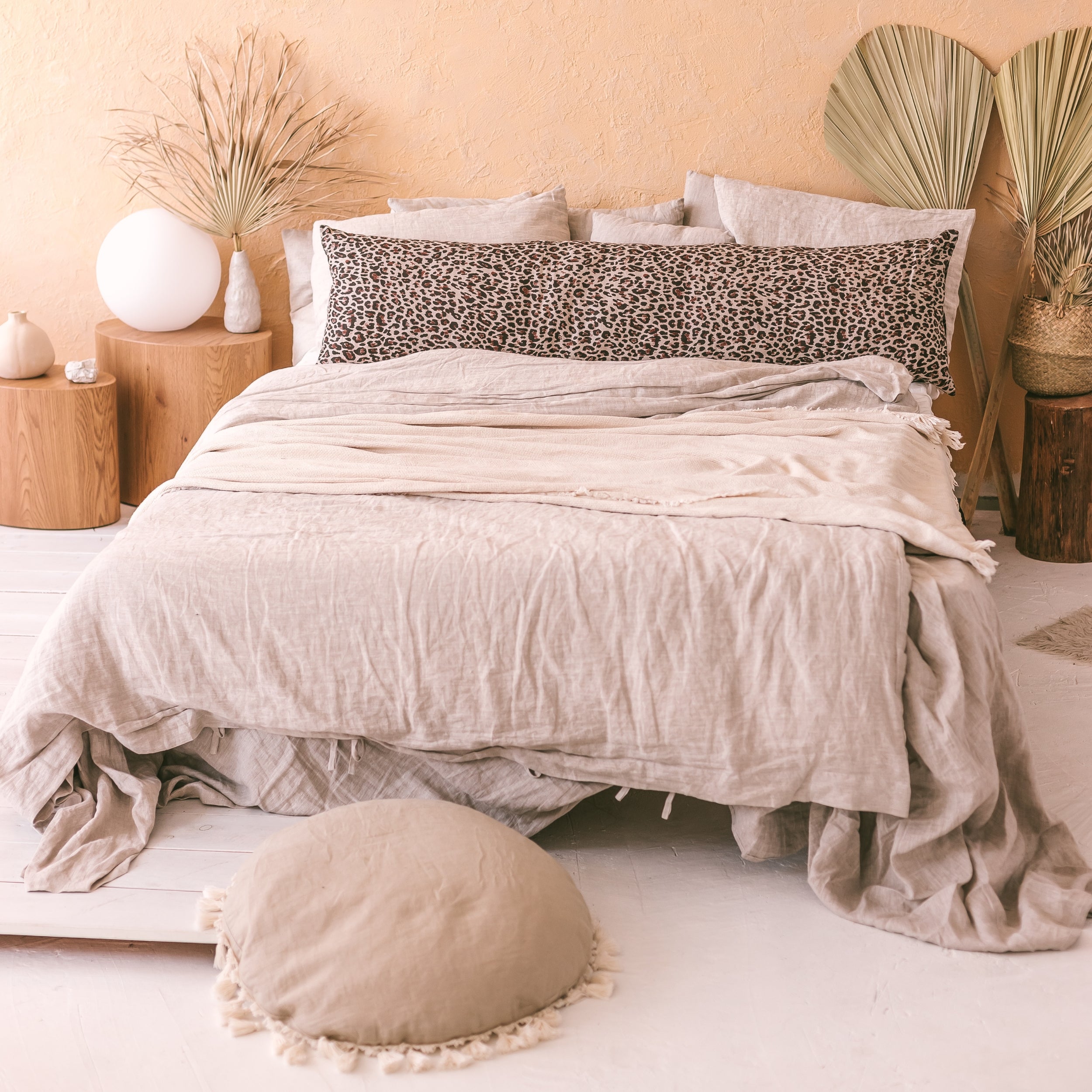 Add a touch of wild charm to your decor with the MINICAMP Lumbar Pillow. Made from premium 100% natural linen with a striking leopard print, this 57-inch-long pillow is as stylish as it is comfortable—perfect for your bed, sofa, or reading nook.