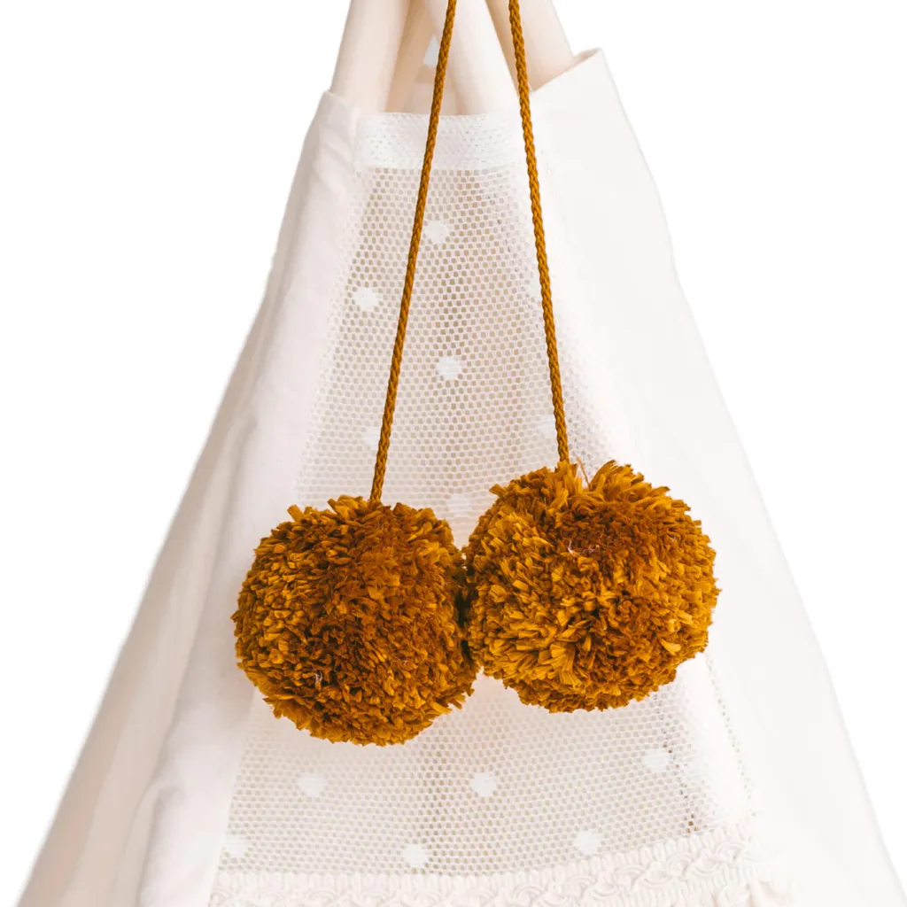 Infuse a pop of color into your space with our Mustard Pom Poms – perfect for teepee tents, nurseries, and vibrant boho-inspired rooms. Each 100% handmade pom-pom is crafted from premium polyester yarn to ensure lasting color and quality. These versatile decorations add a warm, playful touch to any room, from bedrooms and play areas to garden parties and event decor.