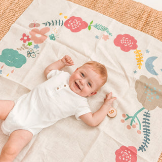 MINICAMP Gėlėtas kūdikių žaidimų kilimėlis su juodais kraštais
