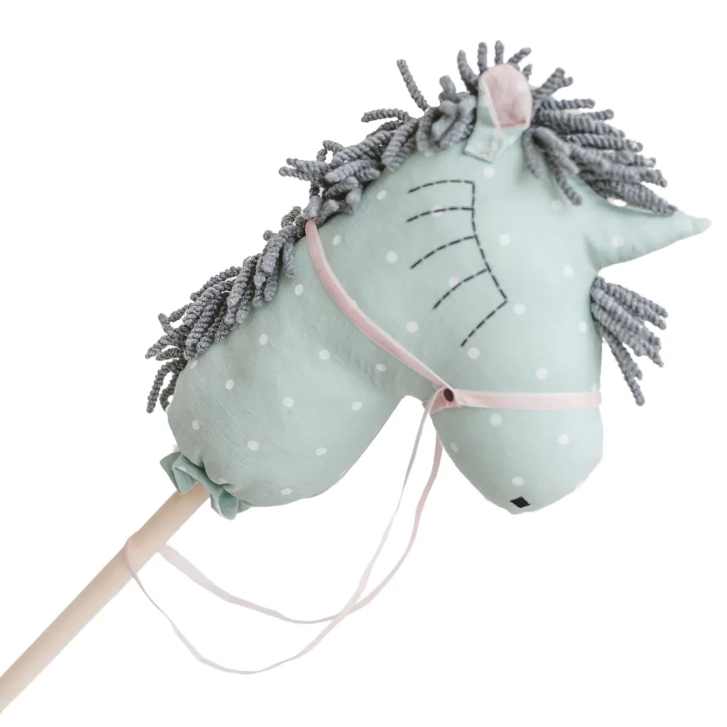 The head of our Unicorn Hobby Horse is crafted from 100% linen, featuring meticulously hand-embroidered eyes and stuffed with hypoallergenic OEKO-TEX certified polyester fiber balls for a soft and huggable feel. The sturdy wooden stick ensures safe and enjoyable play.
